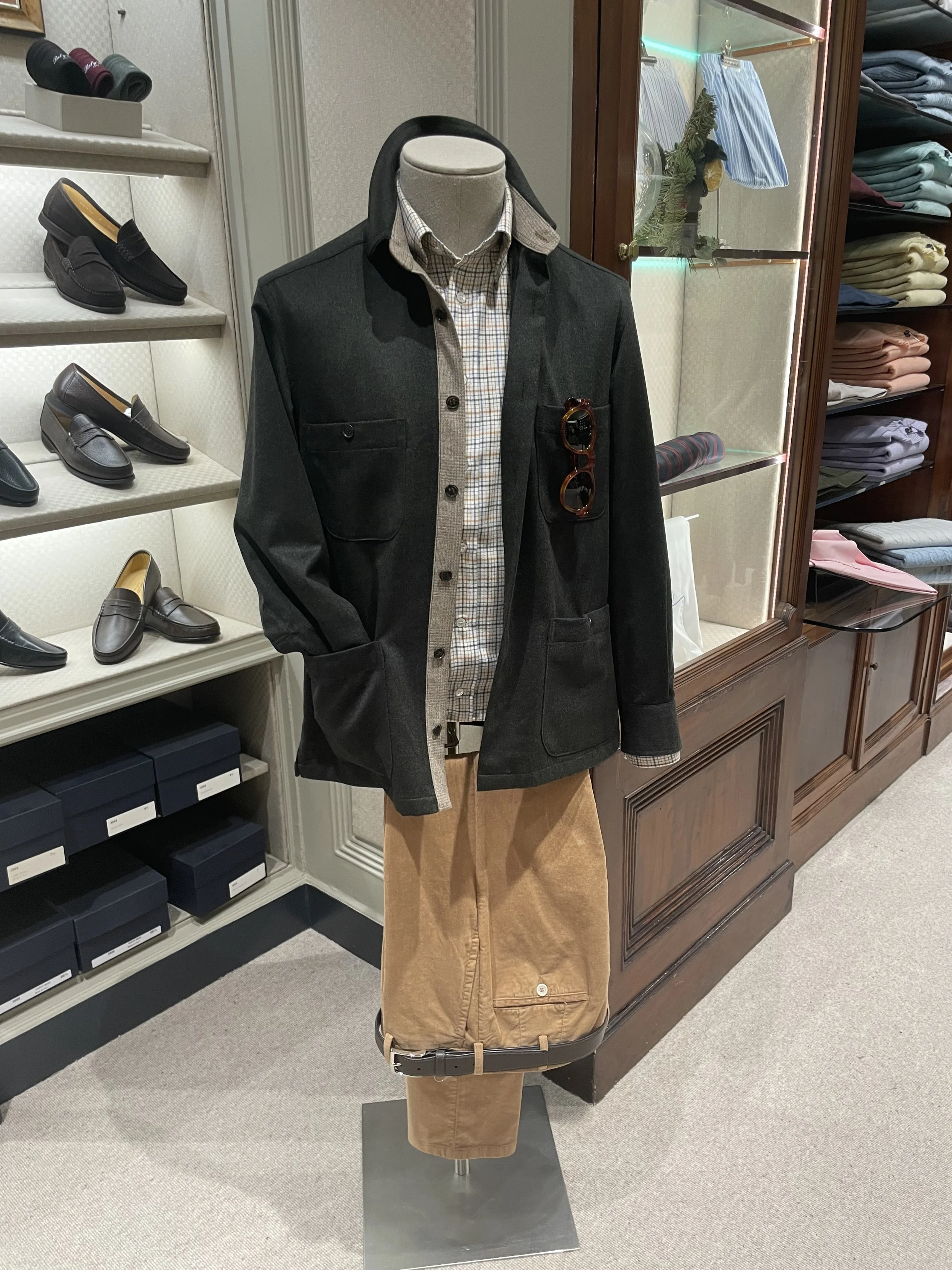 La Teba Jacket, conçue à l’origine comme une veste de chasse souple et fonctionnelle, est devenue au fil du temps un classique recherché : légère, non structurée et adaptée aussi bien aux tenues décontractées qu’aux looks plus élaborés, elle illustre parfaitement l’équilibre entre élégance et fonctionnalité qui caractérise la boutique.