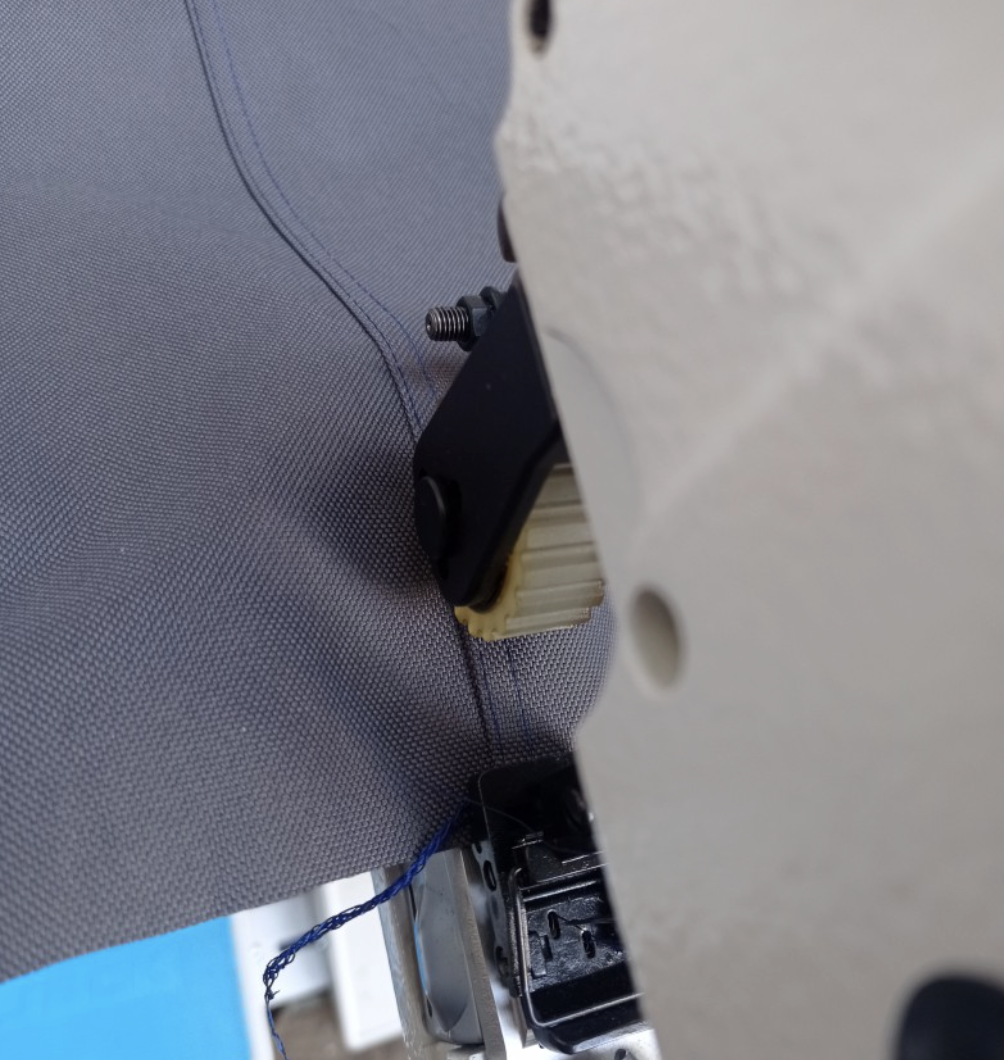 exemple de montage Simple Aiguille chez budd - on distingue le pied special pour rabattre le tissu