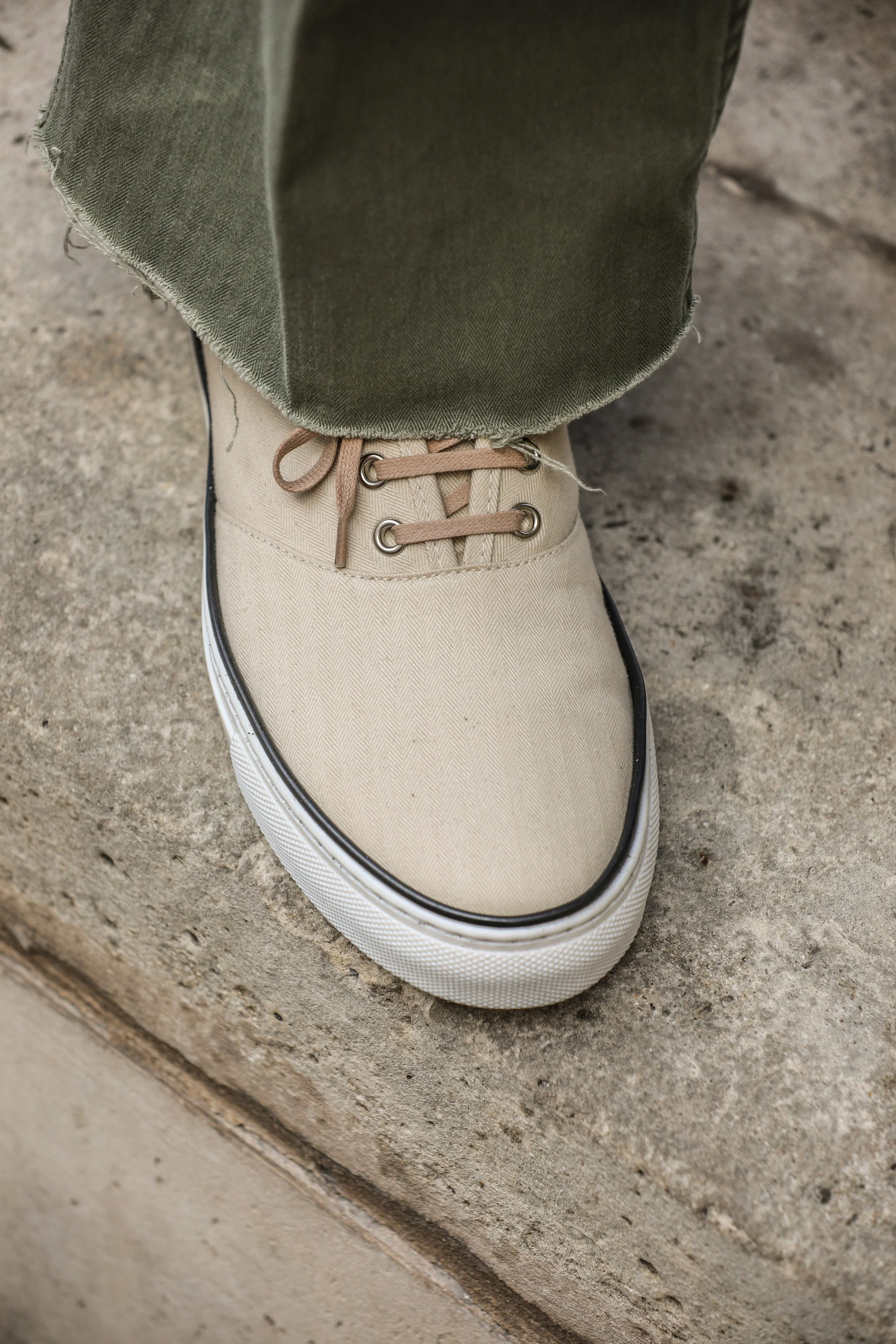 On aime cette esthétique, mais leur toile fine en coton et leur construction par vulcanisation montre vite ses limites. Ces paires ne survivent que rarement au-delà de trois étés, et deviennent vite inutilisables dès que la météo se dégrade. Sous la pluie, dans le froid, ou pire, quand il neige, elles sont inadaptées.